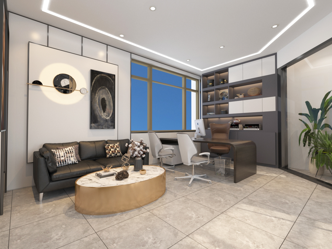 品質進階型(1500-2500 元 /㎡):兼顧專業形象與舒適度,含環保主材升級(E0 級板材、質感瓷磚)、定制化功能分區(隔音會議室、精品接待區)、人體工學家具與基礎智能系統(智能照明、新風),契合成熟公司需求,是尚泰裝飾主流服務套餐。